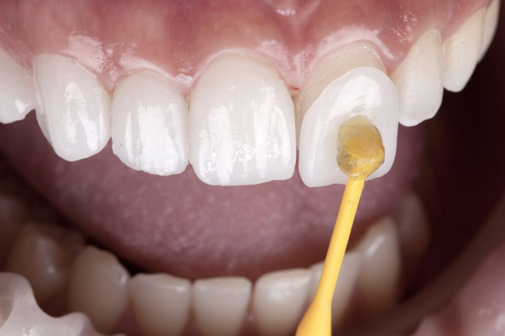 6. Фіксація вінірів здійснюється за допомогою спеціального матеріалу з подальшою фотополімеризацією.